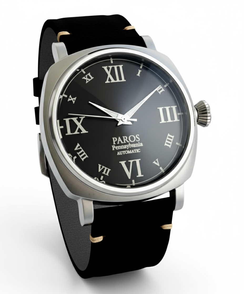 The Boardroom II watch is an evolution of the original Boardroom design. The Boardroom II has updated hands which are more suited for a formal setting, the dial design remains mostly the same as the original boardroom with some minor changes. The boardroom by PAROS personifies beauty in simplicity. A perfect companion for the boardroom or the ballroom.